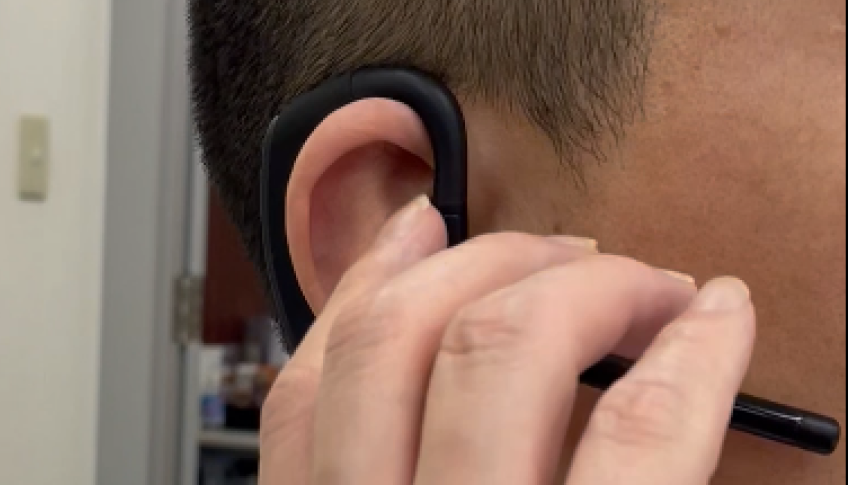 見た目はちょっと重そうな印象ですが、意外と軽くてわずか20g程度。インイヤータイプではなく耳にそっと当てる感じなのでフィット感も良くて、2時間ほど着けていても痛くなりませんでした。これは重要なポイントだと思います。これなら長時間の会議にも耐えられそうです(耳だけは)