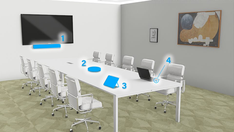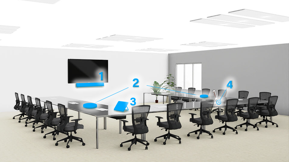 (機能一覧)AI を活用したオーディオとビデオ/共同ホワイトボード/Microsoft カレンダーの統合/あらゆるサイズの部屋に対応 /インクルーシブなビデオレイアウト/設計により保護されたデバイス、ソフトウェア、サービス/ワイヤレスコンテンツ共有/リモートによる展開と管理/インテリジェントスピーカー/ワンタッチ参加と近接参加/IntelliFrame 対応インテリジェントカメラ/資産の把握と管理
