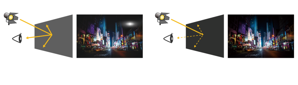 独自の表面処理技術「ディープブラックコーティング」と高効率な微細LEDを組み合わせることで、LEDを組み合わせることで、LEDディスプレイキャビネットの常識を覆す黒レベルを実現しました。広い色域と相まって、そこにいるかのような、臨場感と没入感が体験できます。