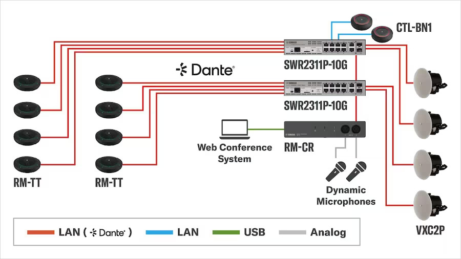 テーブルトップアレイマイクロフォン(RM-TT) + シーリングスピーカー(VXC2P)
