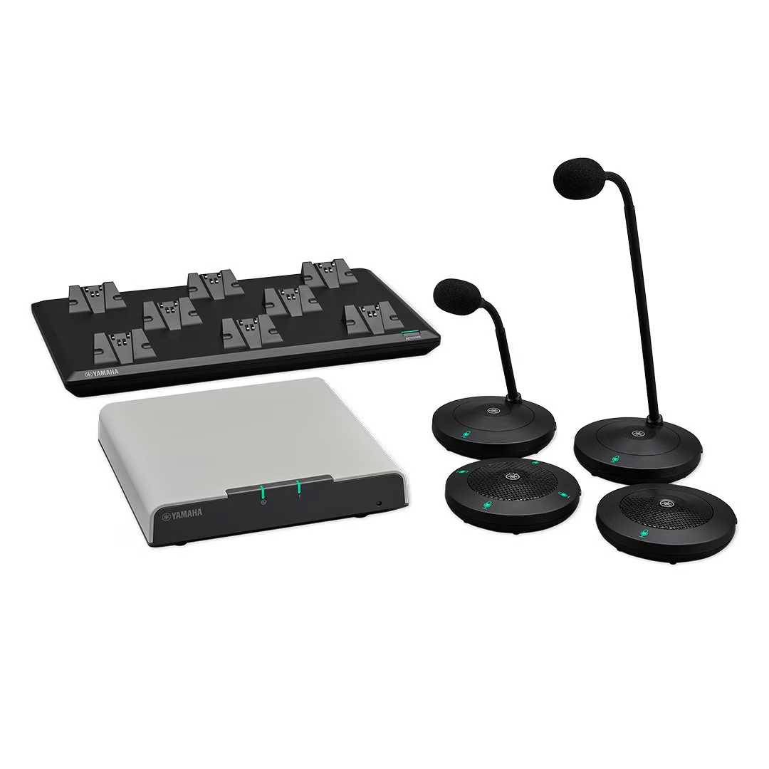1.9GHz帯のDECT方式を採用。グースネック型、卓上型から選択できる遠隔会議用ワイヤレスマイクロフォン。