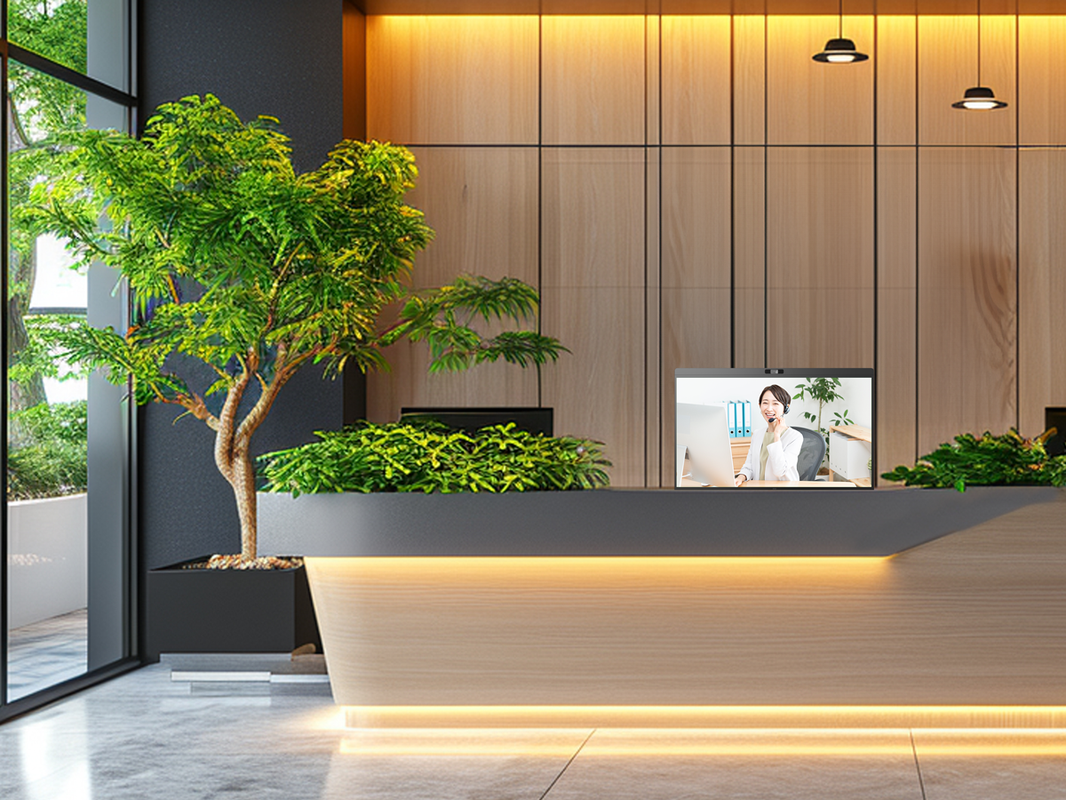 待ち受け画面をカスタマイズ可能で、27インチと小型でオンライン接客用に開発されたDTEN ME Proがおすすめです